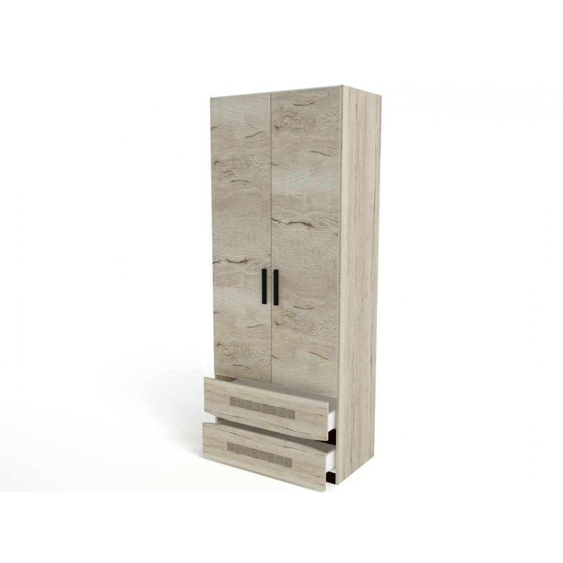 Шкаф двухдверный Мале - обладатель лаконичного и свежего дизайна. Он является представителем коллекции «Мале». В этой коллекции особое внимание уделено внешнему виду и тактильным ощущениям от прикосновения к мебели, схожей с натуральным деревом по рисунку и шероховатости. Деко