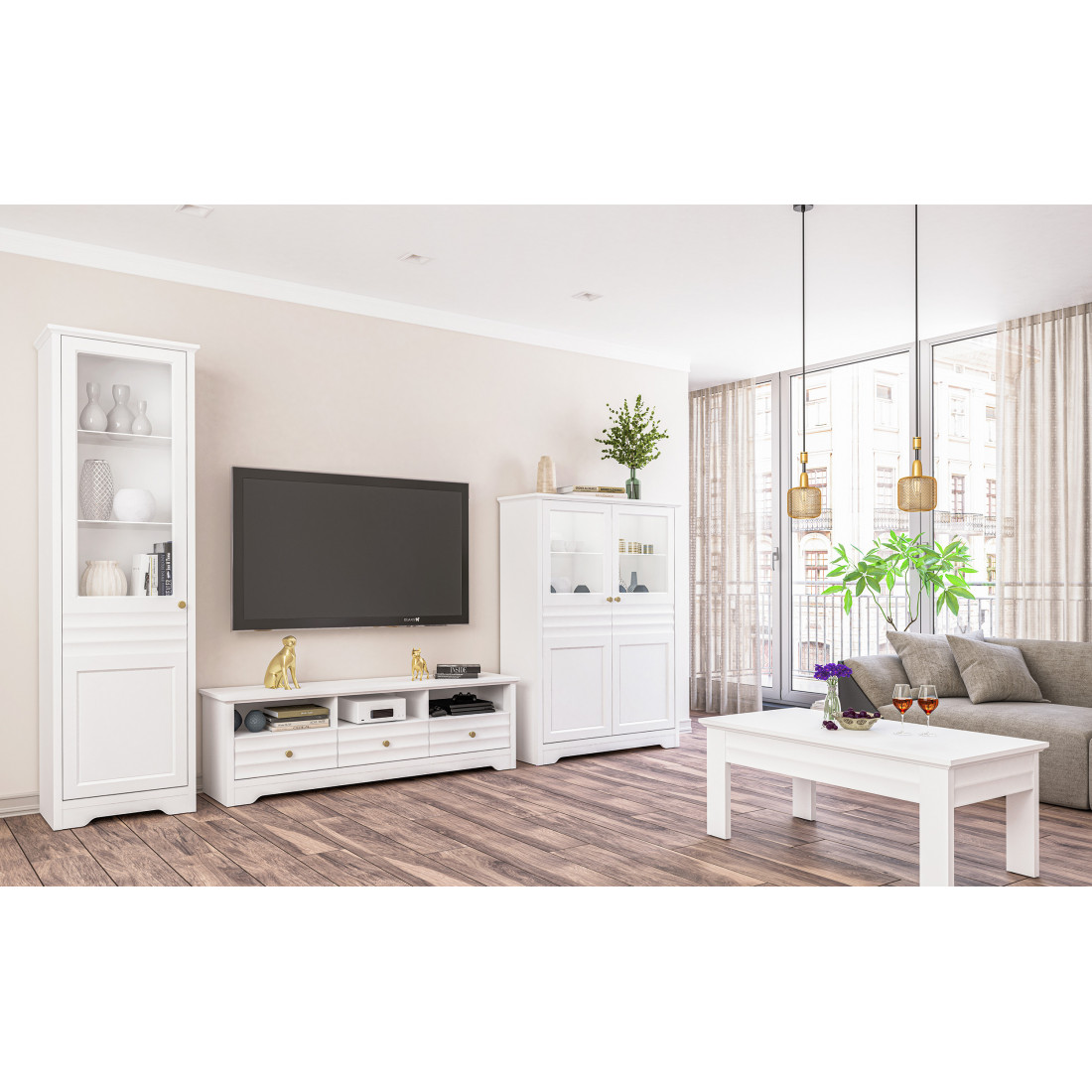 Денвер – это новая коллекция корпусной мебели для спальни, гостиной и столовой. Прямые строгие линии в сочетании с легкой горизонтальной волной на фасадах придают мебели элегантный и уверенный вид. Белый матовый цвет мебели, любимый многими за универсальность, можно сочетать с любым оттенком стен и пола. Округлые металлические золотые ручки разбавляют строгий и лаконичный вид фасадов и добавляют интерьеру утонченности.