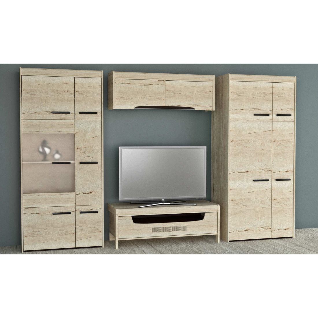 Гостиная «Мале» - обладательница лаконичного и свежего дизайна. Особое внимание привлекают тактильные ощущения от прикосновения к мебели. Декор и структуры, схожие с натуральным деревом по рисунку и шероховатости, придают глубину и естественность. Широкий спектр модулей позволит эргономично использовать Ваше пространство.
