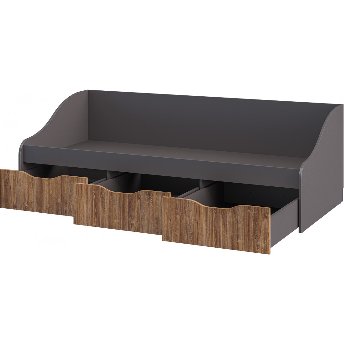Кровать МН-135-01 в виде тахты с выдвижными ящиками для хранения постельного белья, размер спального места 200*90