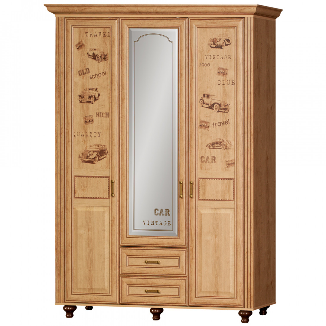 Фасады: МДФ, декор – дуб ридинг, рисунок, патина, стекло с фацетом и рисунком, зеркало