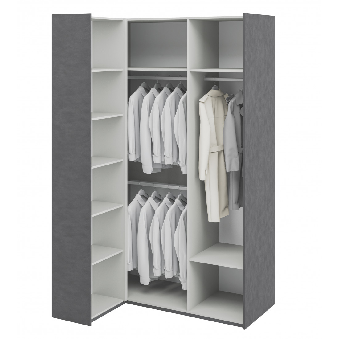 Элегантный шкаф Модена создает изысканную атмосферу в вашей спальни. Предлагается в трех стильных вариантах цветов: Белый-Дуб Элисон, Лунный камень-жемчуг, Металл Бруклин-лунный жемчуг.